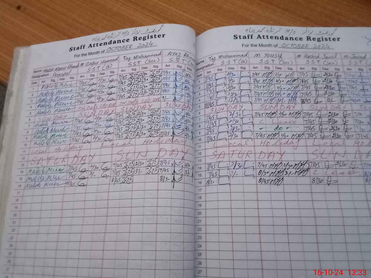 | CNIC | Full Name | Designation | R/C | Absence during last cal. month |