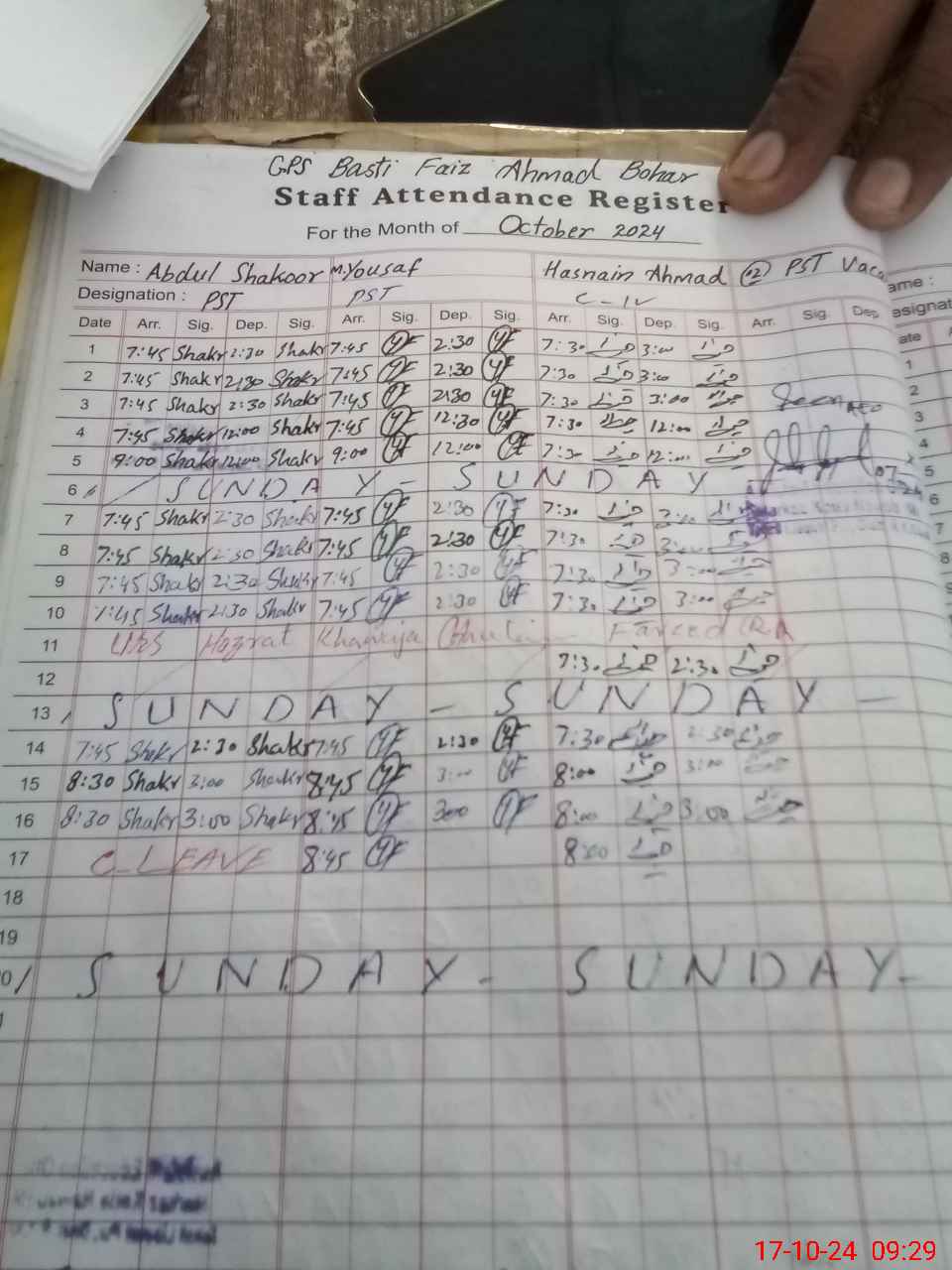 | Name: AB**** SH**** Designation: (School Headmaster's/Headmistress's) PST Phone/Cell Number: 03**** |