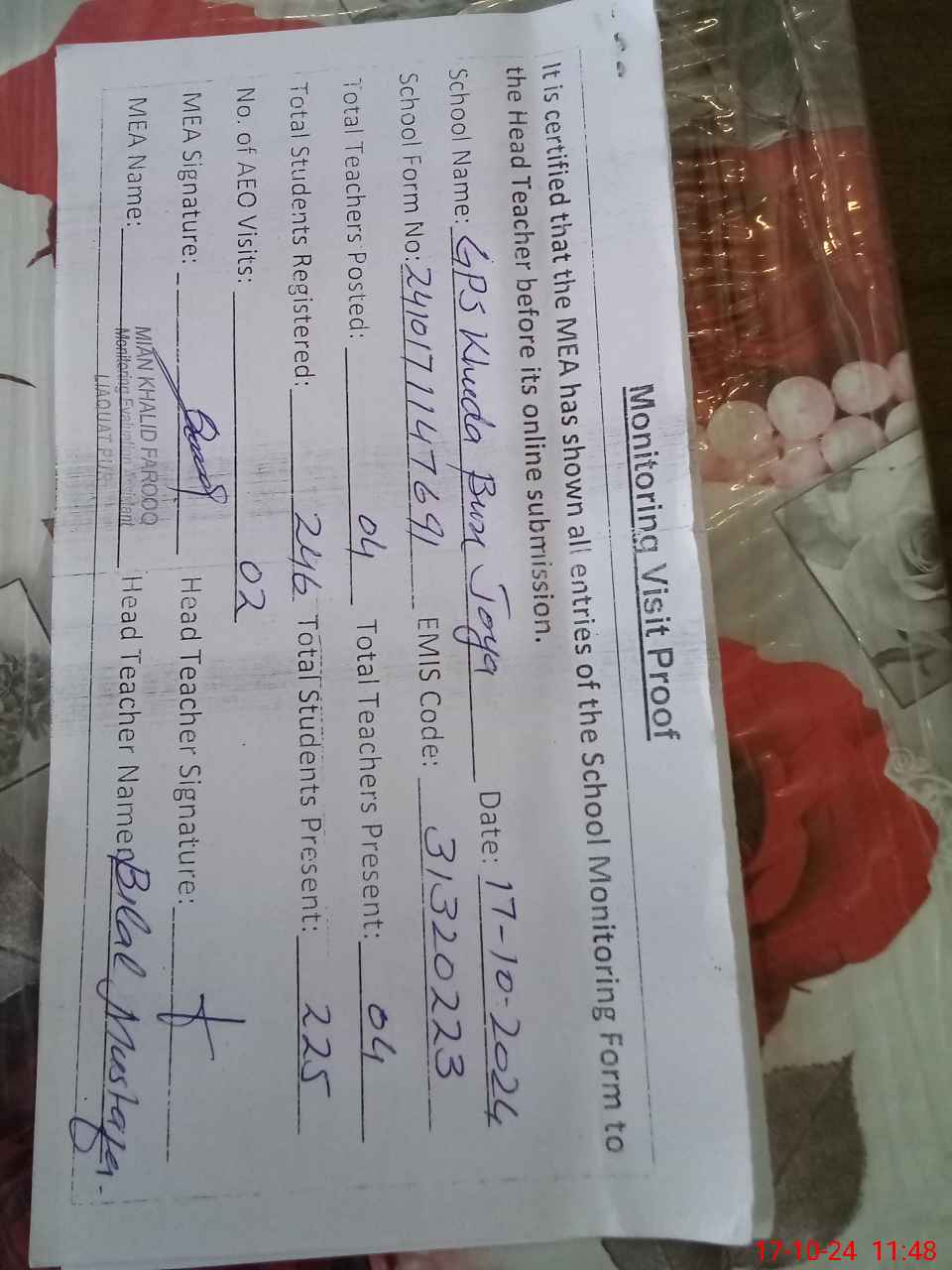 | EMIS Code: 31320223 | Name of School: GPS KHUDA BUKSH JOIYA | |||