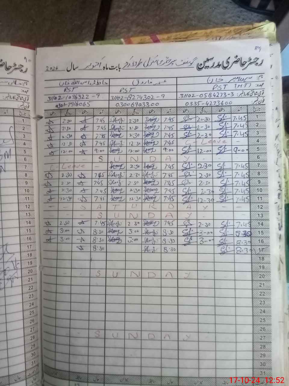 | Name: SA**** AM**** KH**** Designation: (School Headmaster's/Headmistress's) PST Phone/Cell Number: 03**** |