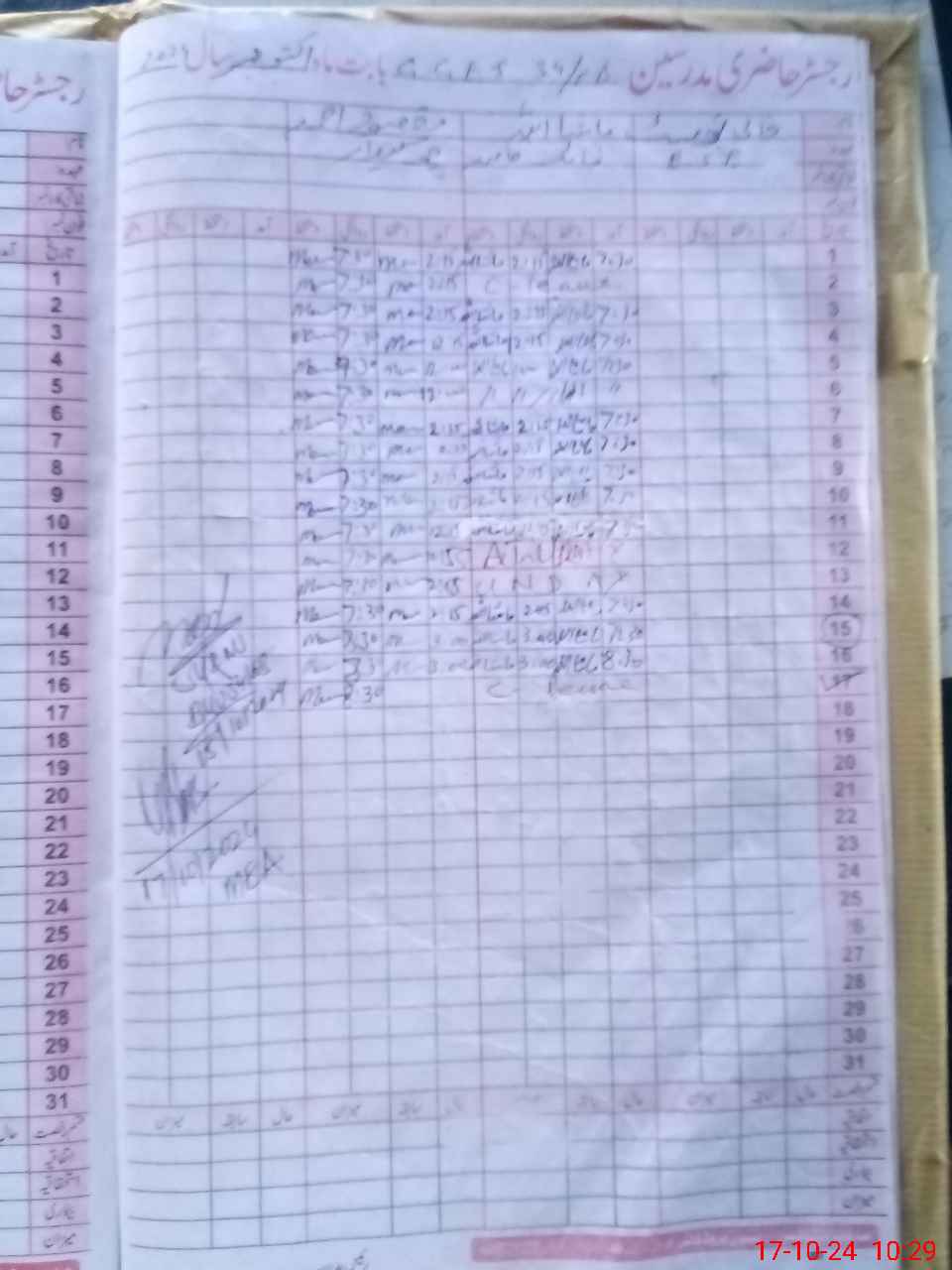| CNIC | Full Name | Designation | R/C | Absence During Last Calender Month |
