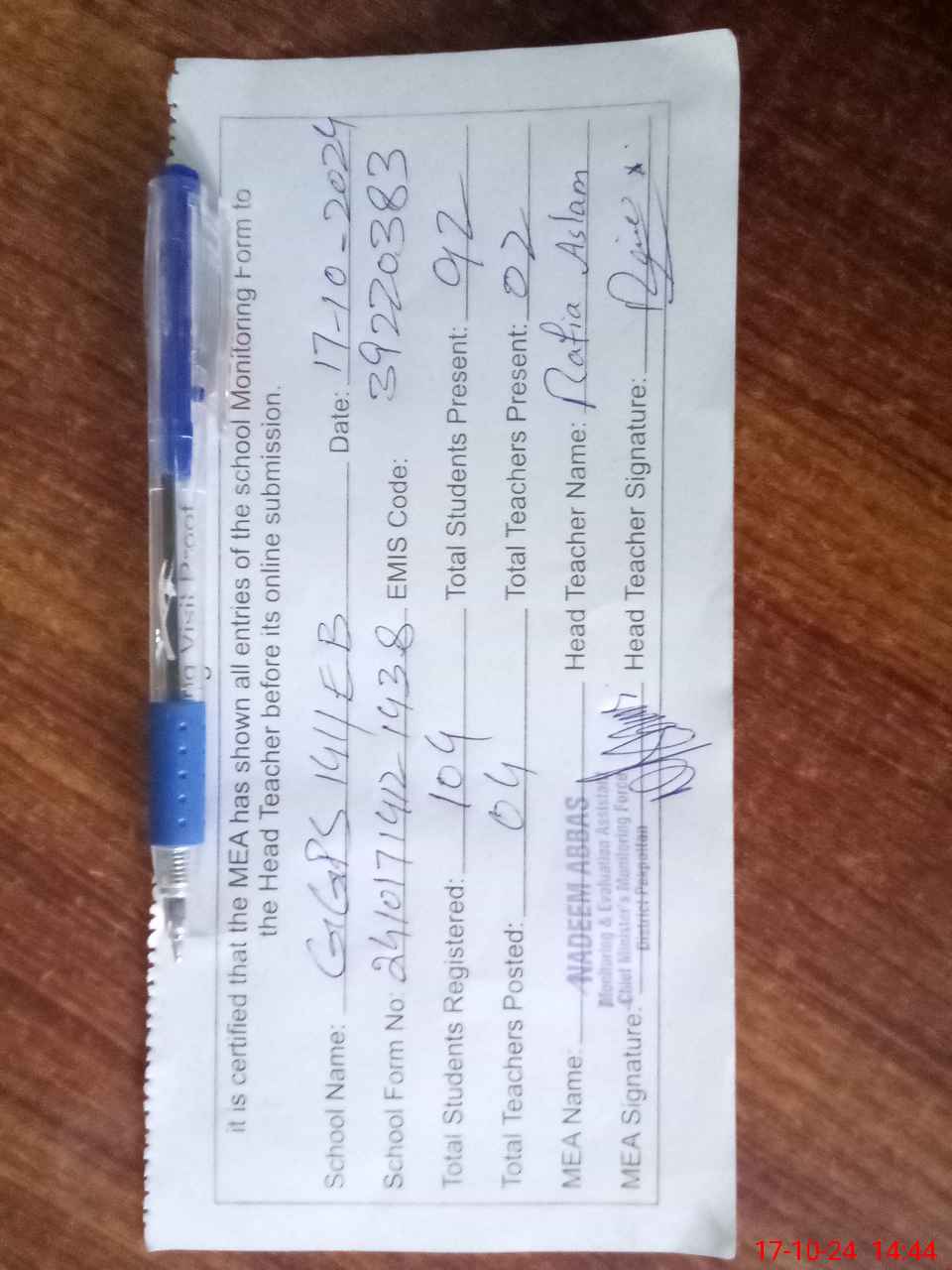 | EMIS Code: 39220383 | Name of School: GGPS 141 EB TEH ARIFWALA | |||
