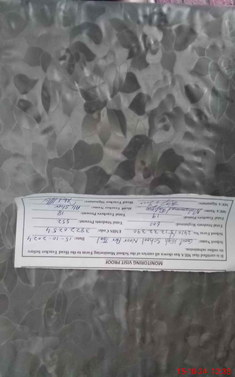 | Certified that this School was Inspected by the Undersigned MEA/DMO Today and the Information Stated Above is as Per Record. | |||||