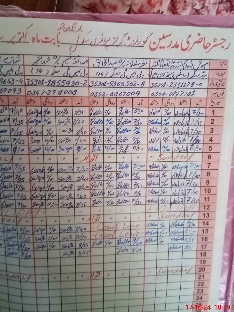 | Name: NA**** SU**** Designation: (School Headmaster's/Headmistress's) PST Phone/Cell Number: 03**** |