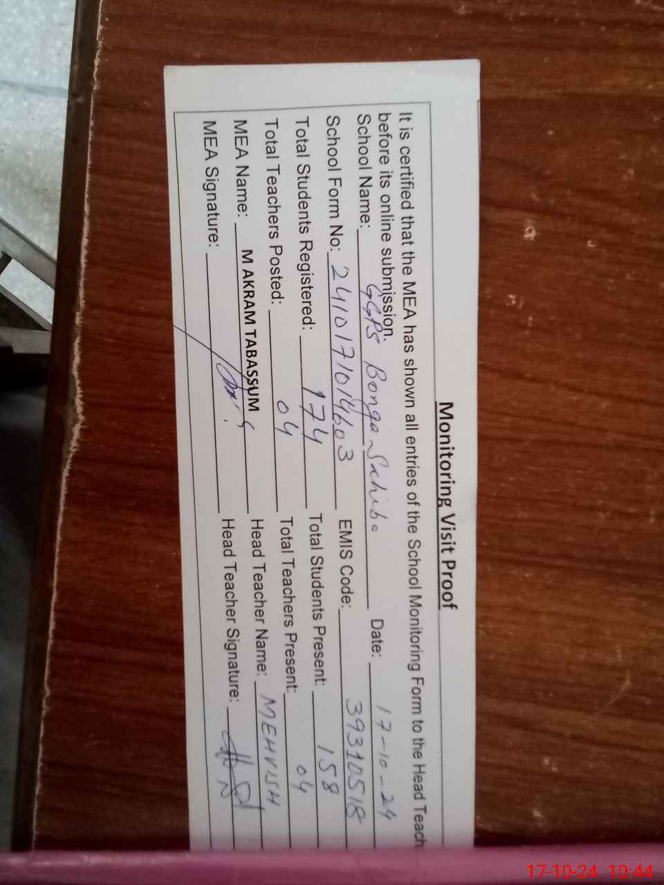 | EMIS Code: 39310518 | Name of School: GGPS BONGA SAHBA | |||