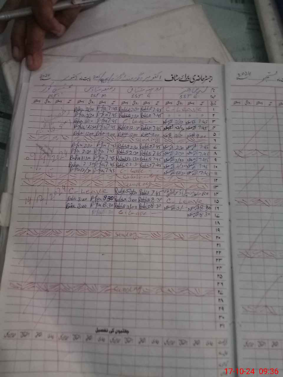 | CNIC | Full Name | Designation | R/C | Absence During Last Calender Month |