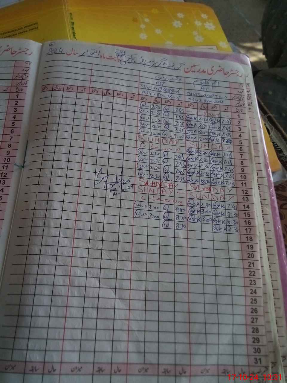 | CNIC | Full Name | Designation | R/C | Absence During Last Calender Month |