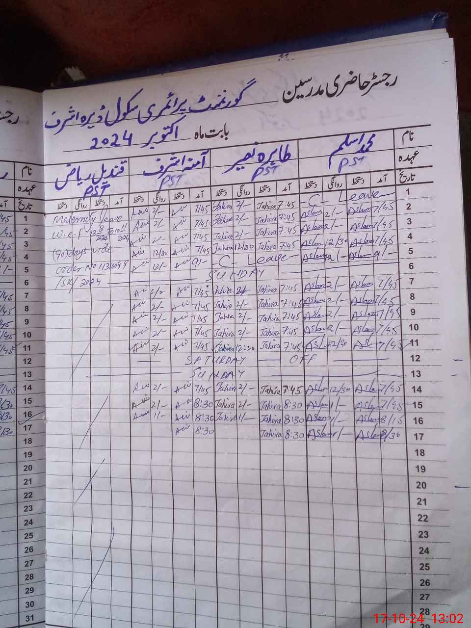 | 35**** | Qa**** Ri**** | PST | Regular | 30 | 0 | 0 | 30 | 0 | 0 | 0 | 0 | 0 | Maternity |