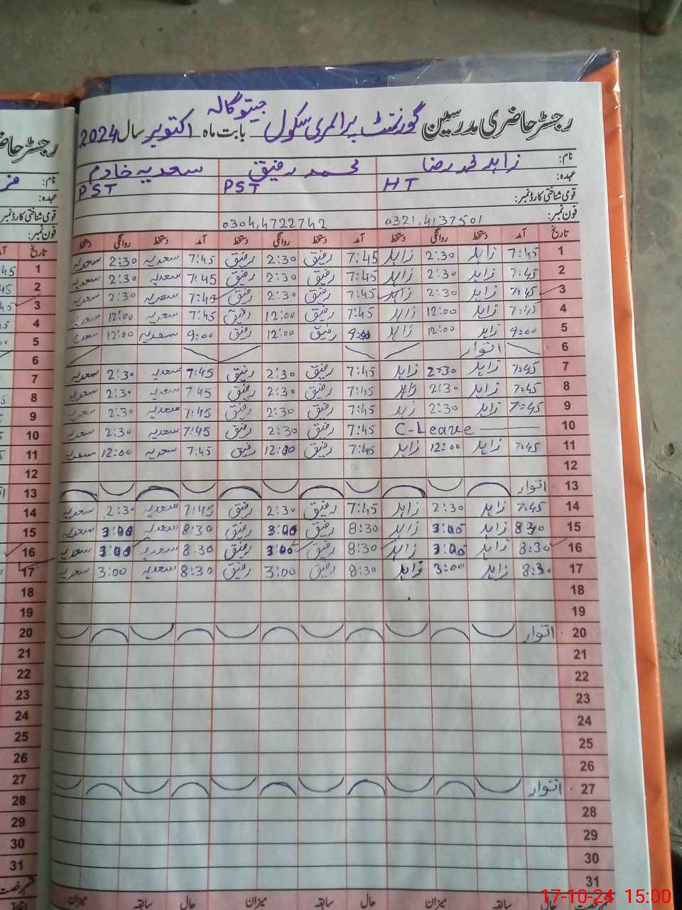 | Name: Za**** Mu**** Ra**** Designation: (School Headmaster's/Headmistress's) Pst Phone/Cell Number: 03**** |