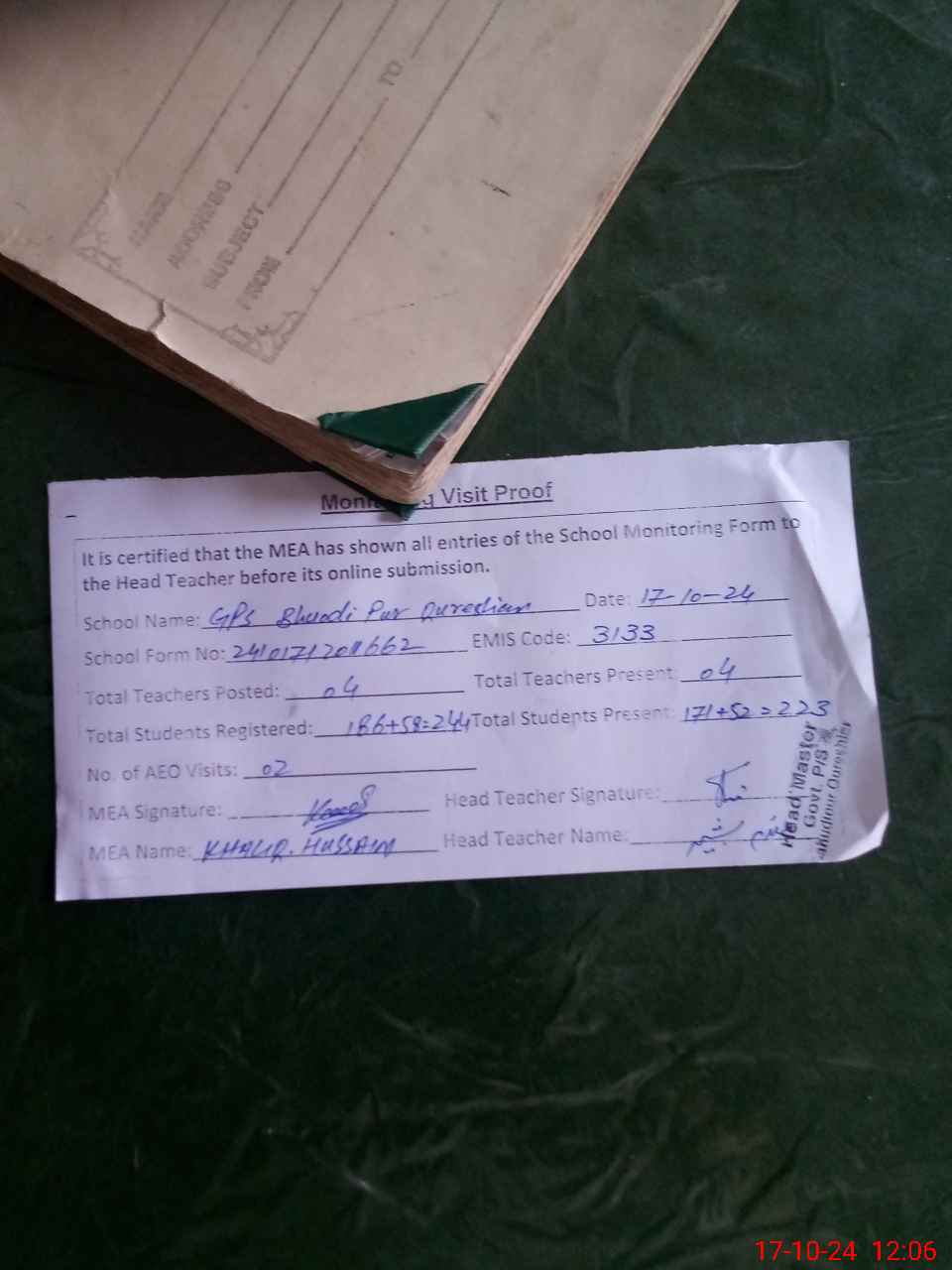 | Name: Gh**** Sh**** Designation: (School Headmaster's/Headmistress's) PST/PTC/JV Phone/Cell Number: 03**** |