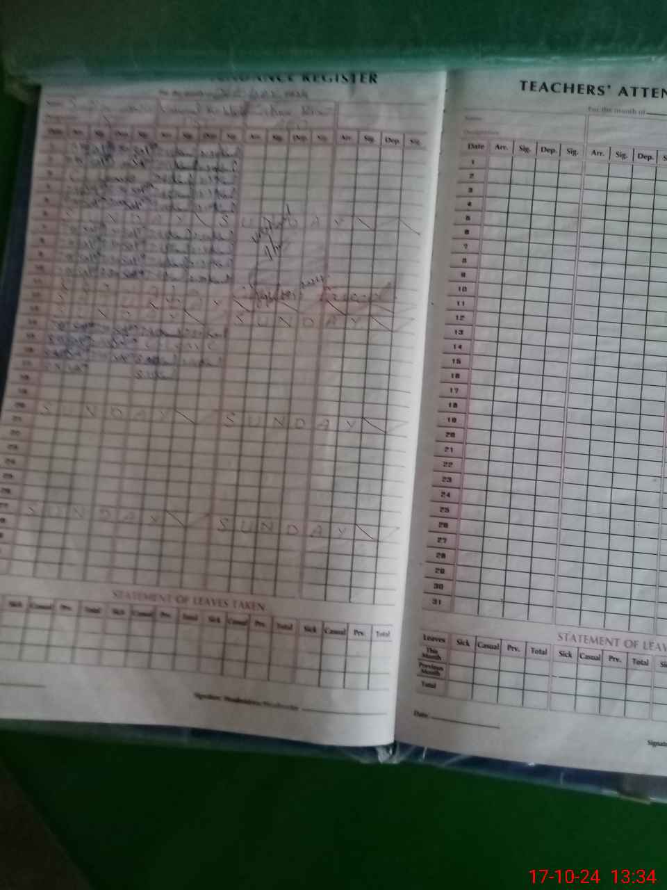 | Leave | Duty | Absent | Maternity | Medical | Ex- Pak |