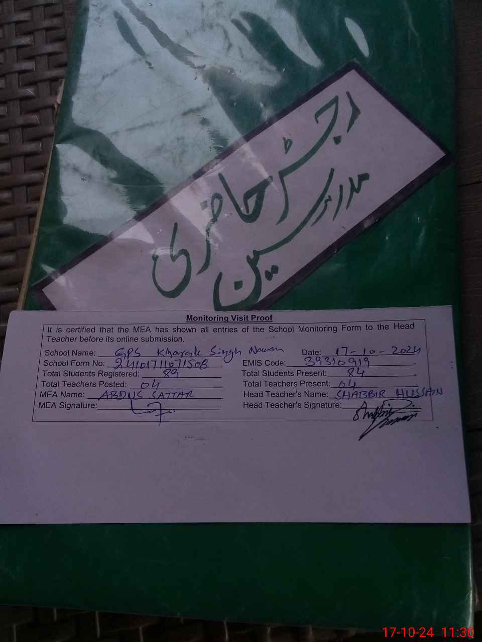 | EMIS Code: 39310919 | Name of School: GPS NAWAN CHAK KHARAK SINGH | |||