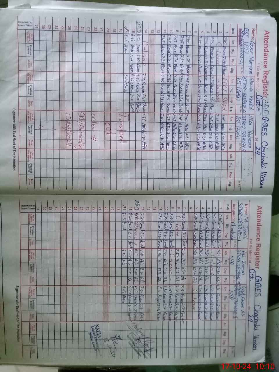| CNIC | Full Name | Designation | R/C | Absence During Last Calender Month |