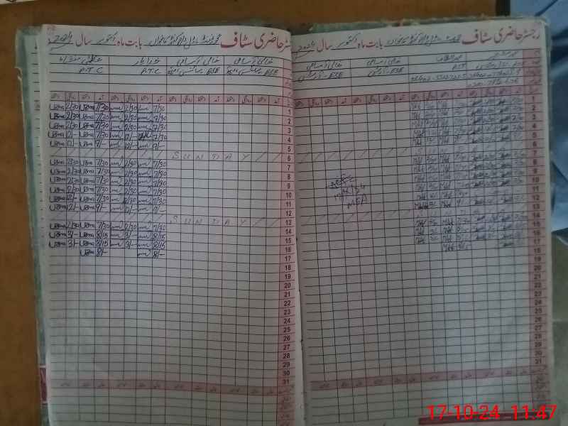 | CNIC | Full Name | Designation | R/C | Absence During Last Calender Month |