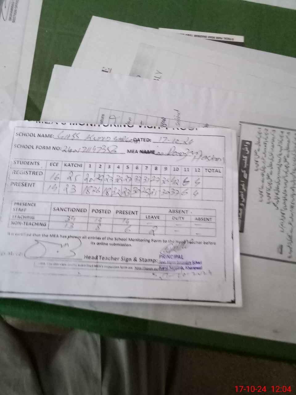 | Certified that this School was Inspected by the Undersigned MEA/DMO Today and the Information Stated Above is as Per Record. | |||||