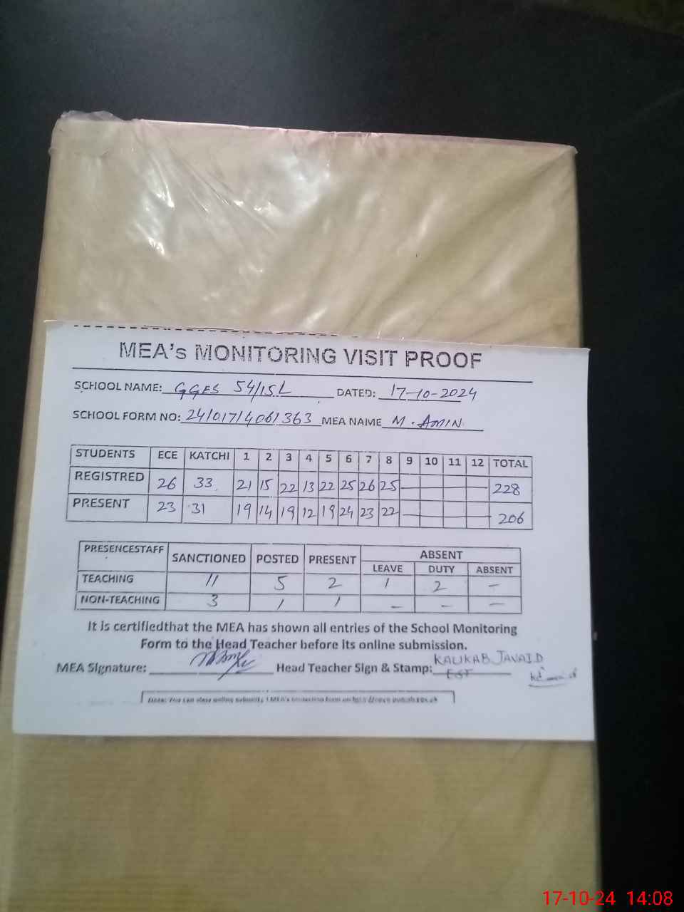 | EMIS Code: 36430094 | Name of School: GGES 54/15-L, MIAN CHANNU | |||