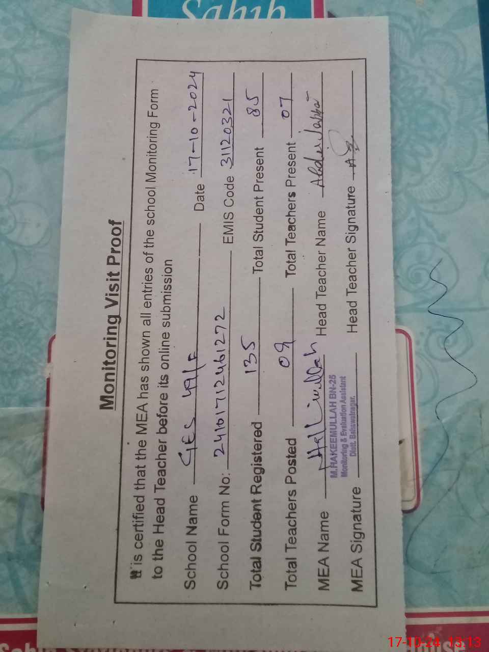 | EMIS Code: 31120321 | Name of School: GES CHAK NO. 49/F | |||