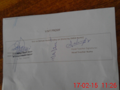| Attendance Register | Head Teacher | MEA with School | Visit Proof |