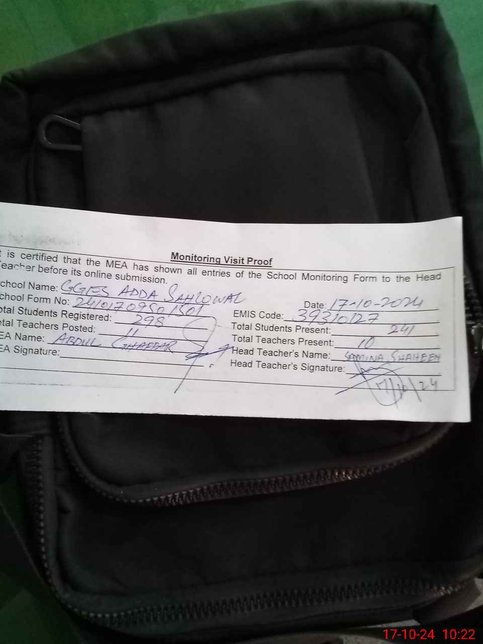 | Attendance Register | Head Teacher | MEA with School | Visit Proof |