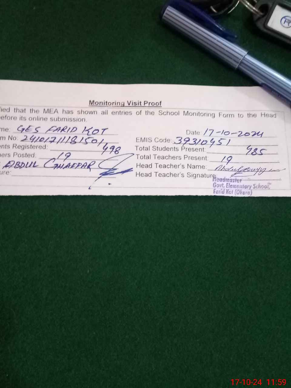 | EMIS Code: 39310451 | Name of School: GES FARID KOT | |||