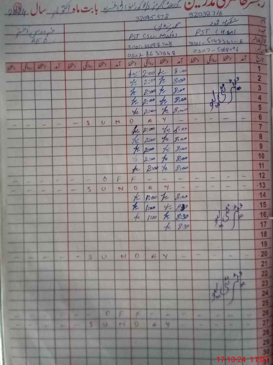 | Name: Sh**** ME**** Designation: (School Headmaster's/Headmistress's) PST Phone/Cell Number: 03**** |