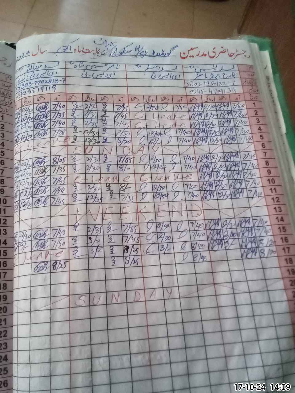 | Leave | Duty | Absent | Maternity | Medical | Ex- Pak |
