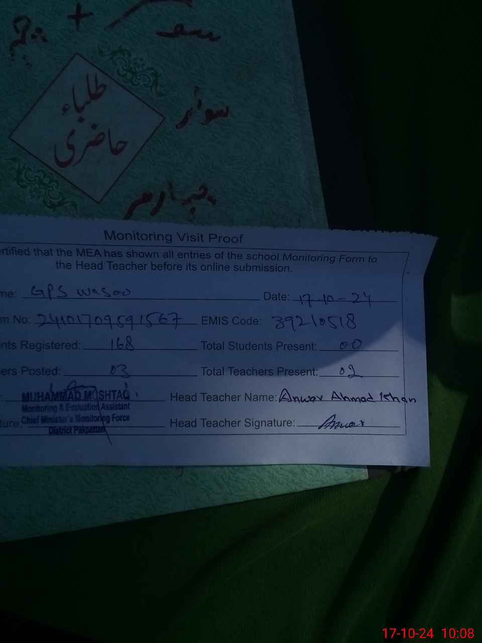 | EMIS Code: 39210518 | Name of School: GPS WASOO | |||