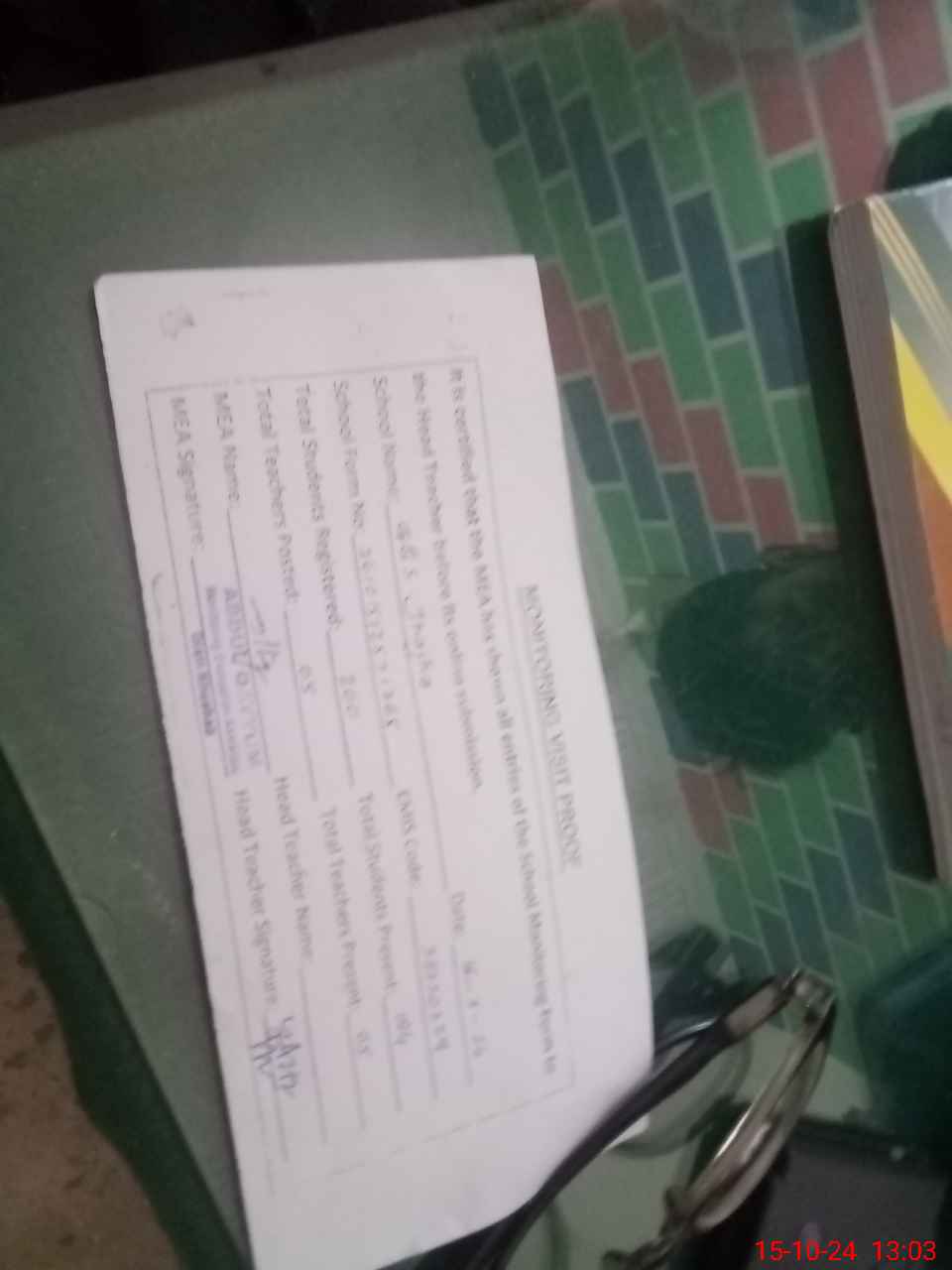| Attendance Register | Head Teacher | MEA with School | Visit Proof |