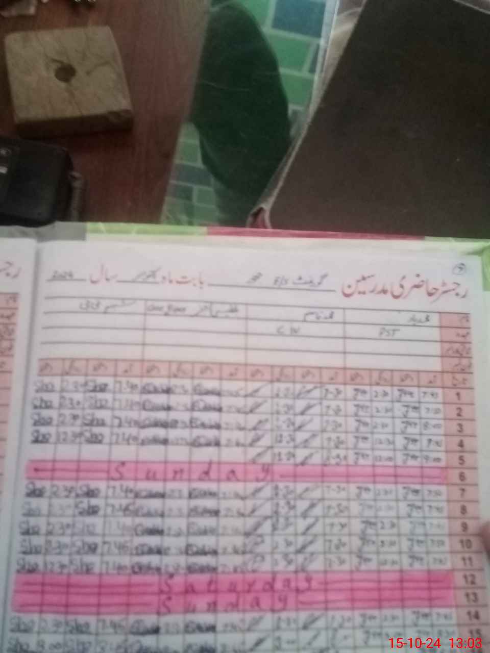 | CNIC | Full Name | Designation | R/C | Absence During Last Calender Month |