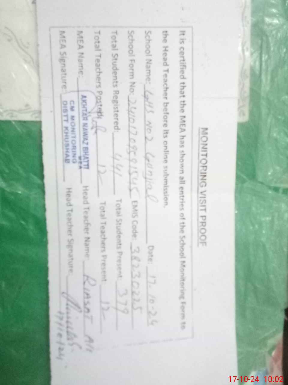 | EMIS Code: 38230225 | Name of School: GHS NO. 2 GUNJIAL | |||