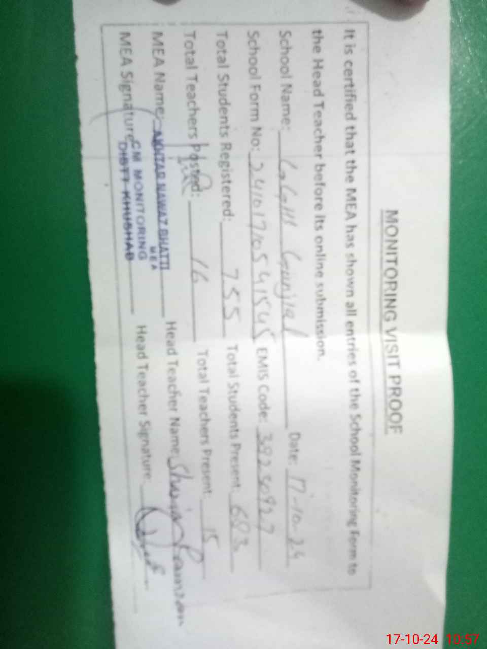 | EMIS Code: 38230927 | Name of School: GGHS GUNJIAL | |||