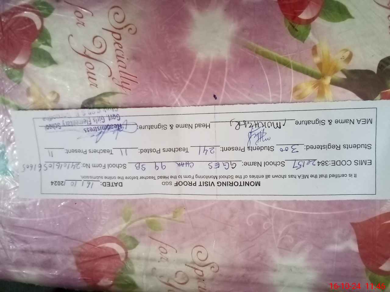 | Certified that this School was Inspected by the Undersigned MEA/DMO Today and the Information Stated Above is as Per Record. | |||||