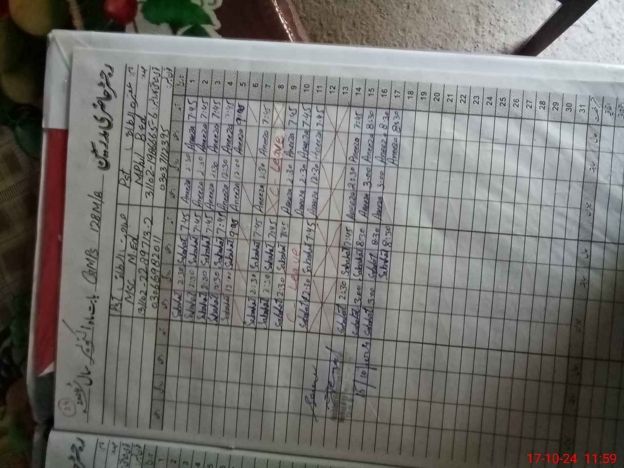 | Leave | Duty | Absent | Maternity | Medical | Ex- Pak |