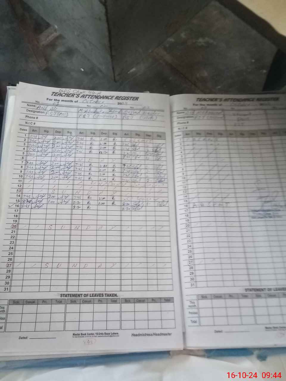 | Name: AS**** AL**** Designation: (School Headmaster's/Headmistress's) PST Phone/Cell Number: 03**** |