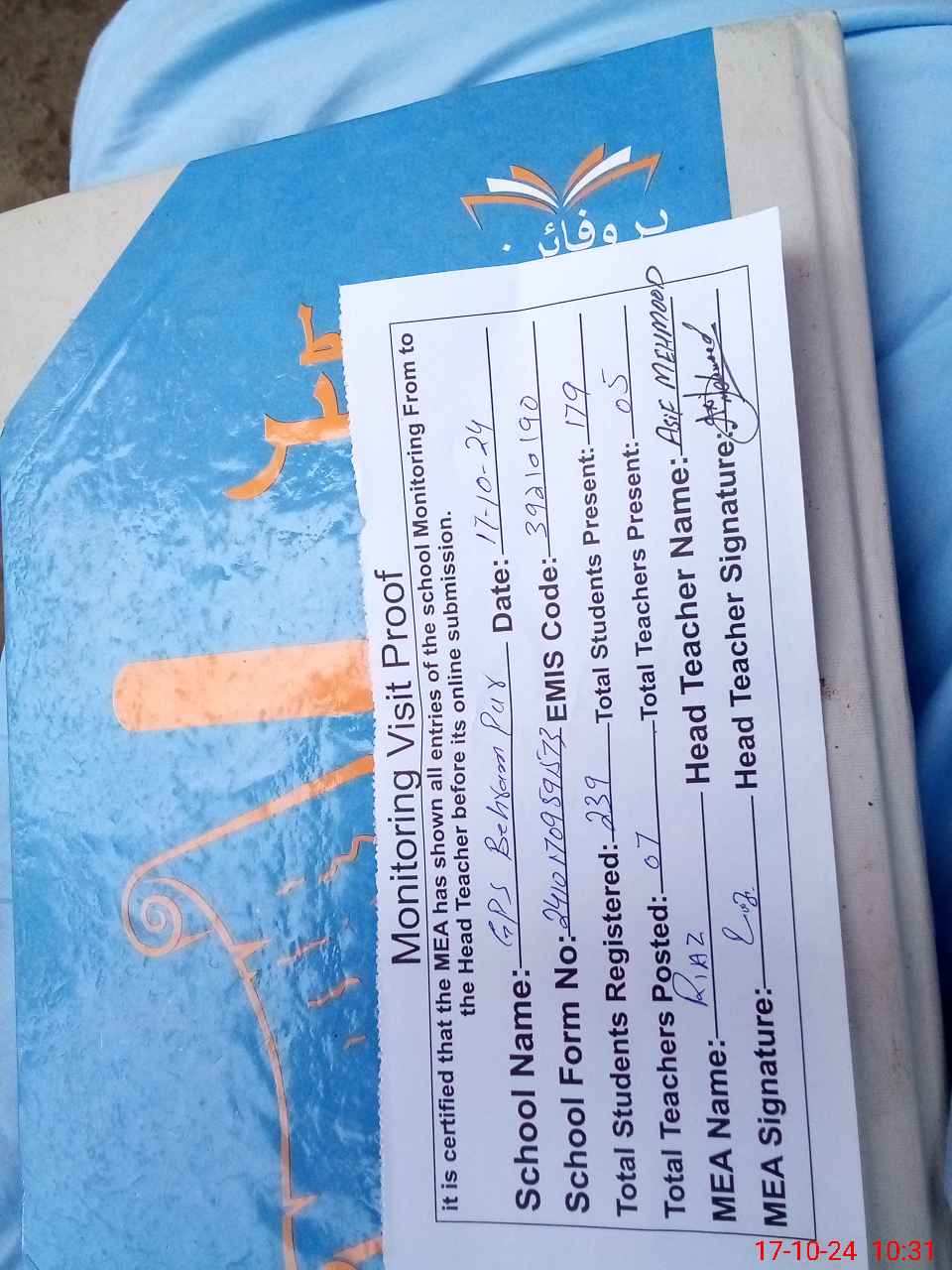 | EMIS Code: 39210190 | Name of School: GPS BEHRAM PUR PO PAKPATTAN | |||