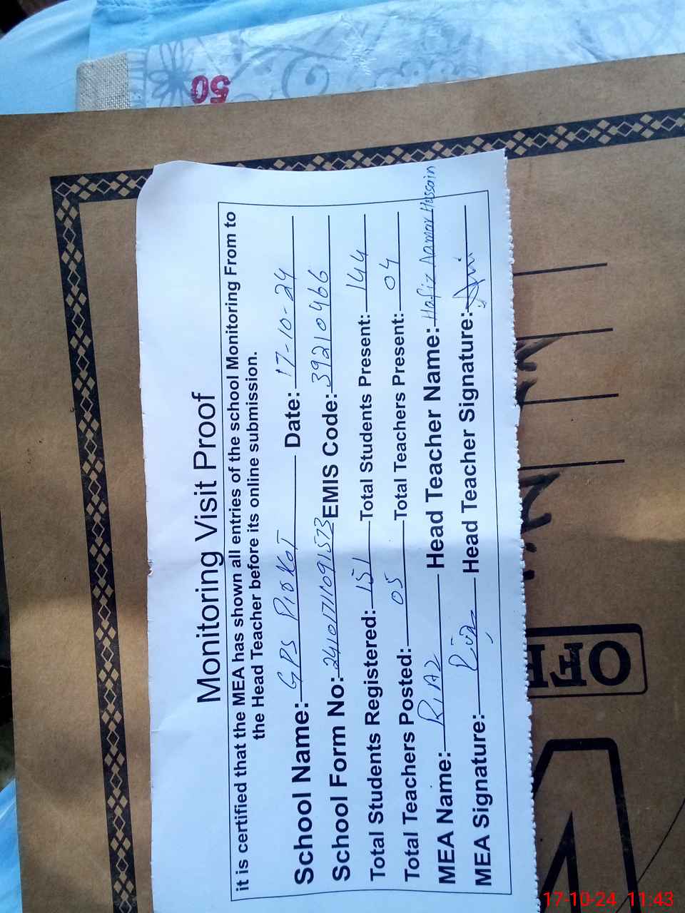 | EMIS Code: 39210466 | Name of School: GPS PIR KOT PAKPATTAN | |||