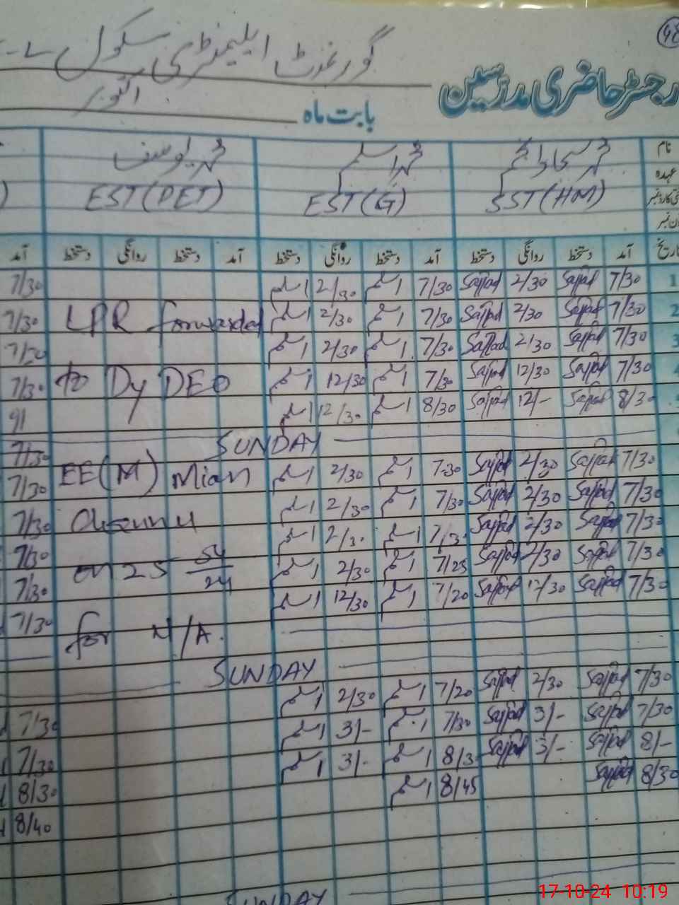 | CNIC | Full Name | Designation | R/C | Absence During Last Calender Month |