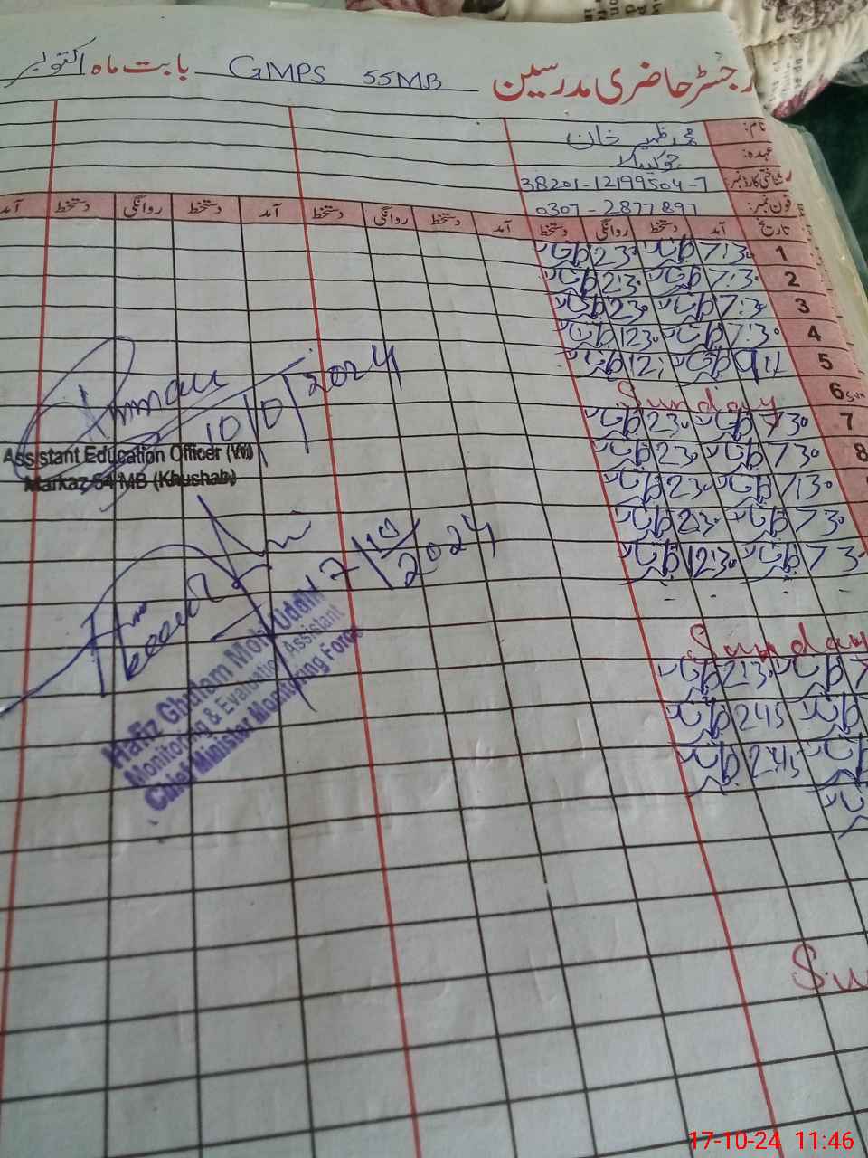 | Name: Sa**** Mo**** Designation: (School Headmaster's/Headmistress's) Est Phone/Cell Number: 03**** |