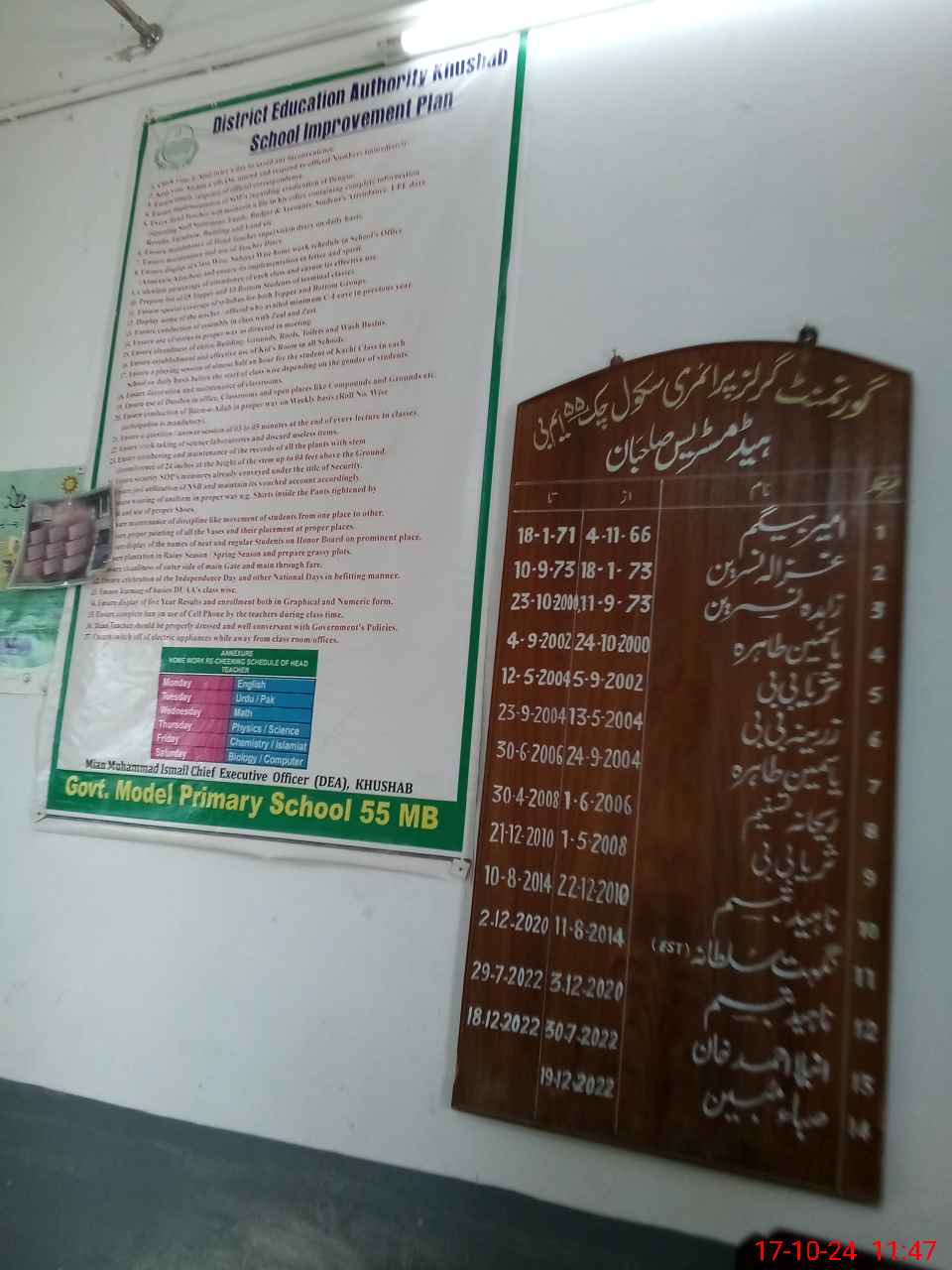 | Certified that this School was Inspected by the Undersigned MEA/DMO Today and the Information Stated Above is as Per Record. | |||||