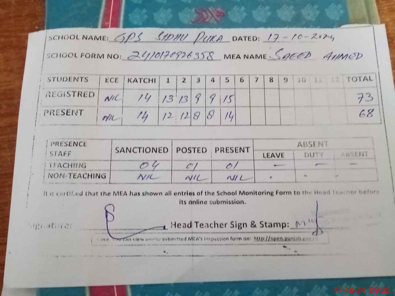 | Name: MU**** US**** AS**** Designation: (School Headmaster's/Headmistress's) PST Phone/Cell Number: 03**** |