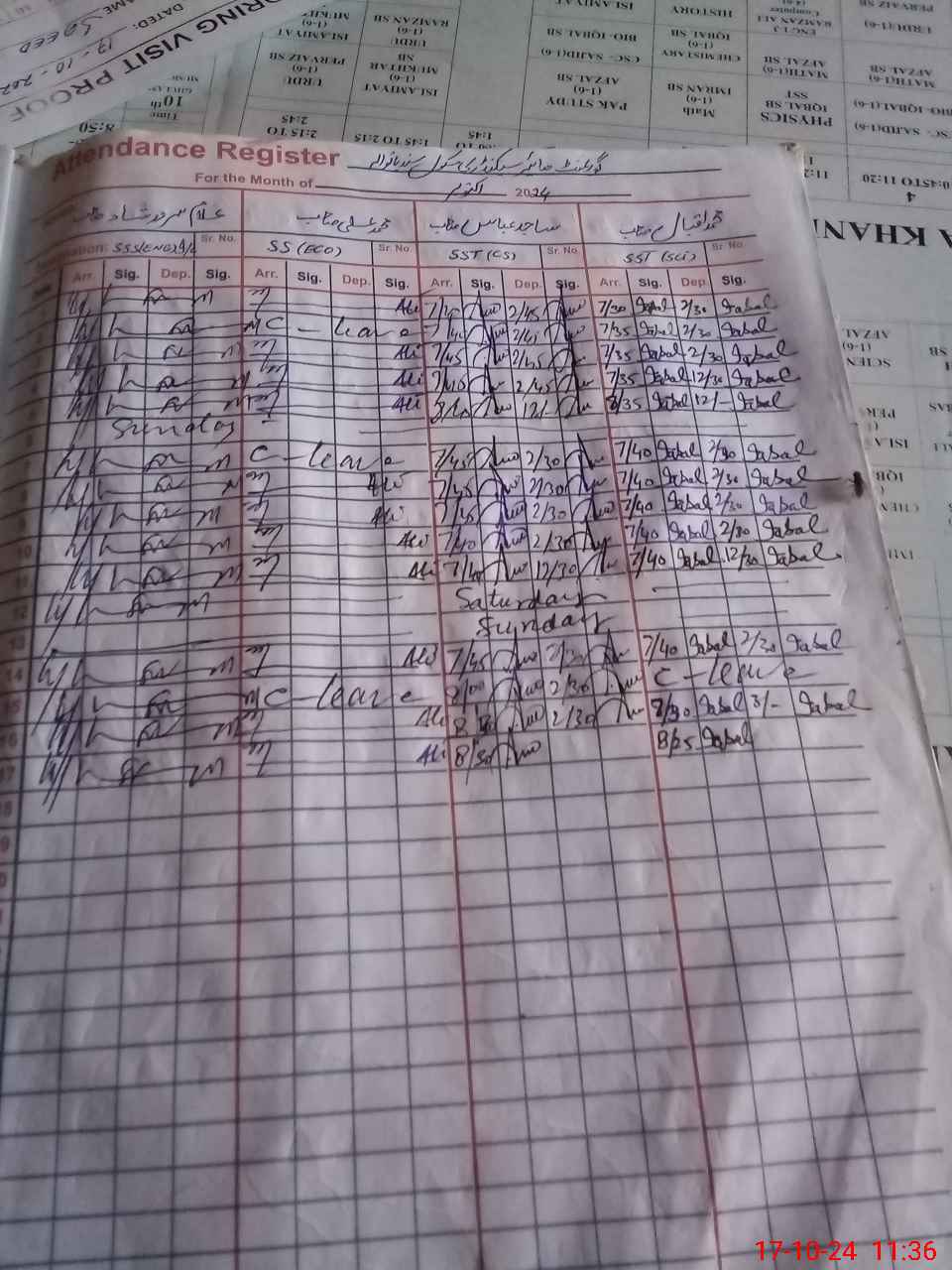 | CNIC | Full Name | Designation | R/C | Absence During Last Calender Month |
