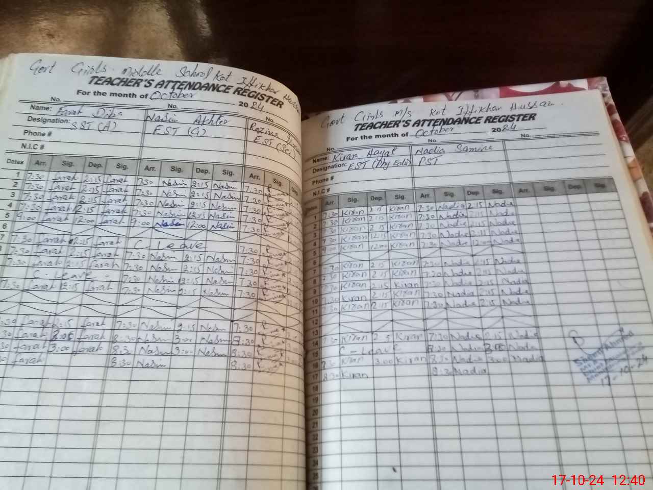 | CNIC | Full Name | Designation | R/C | Absence During Last Calender Month |