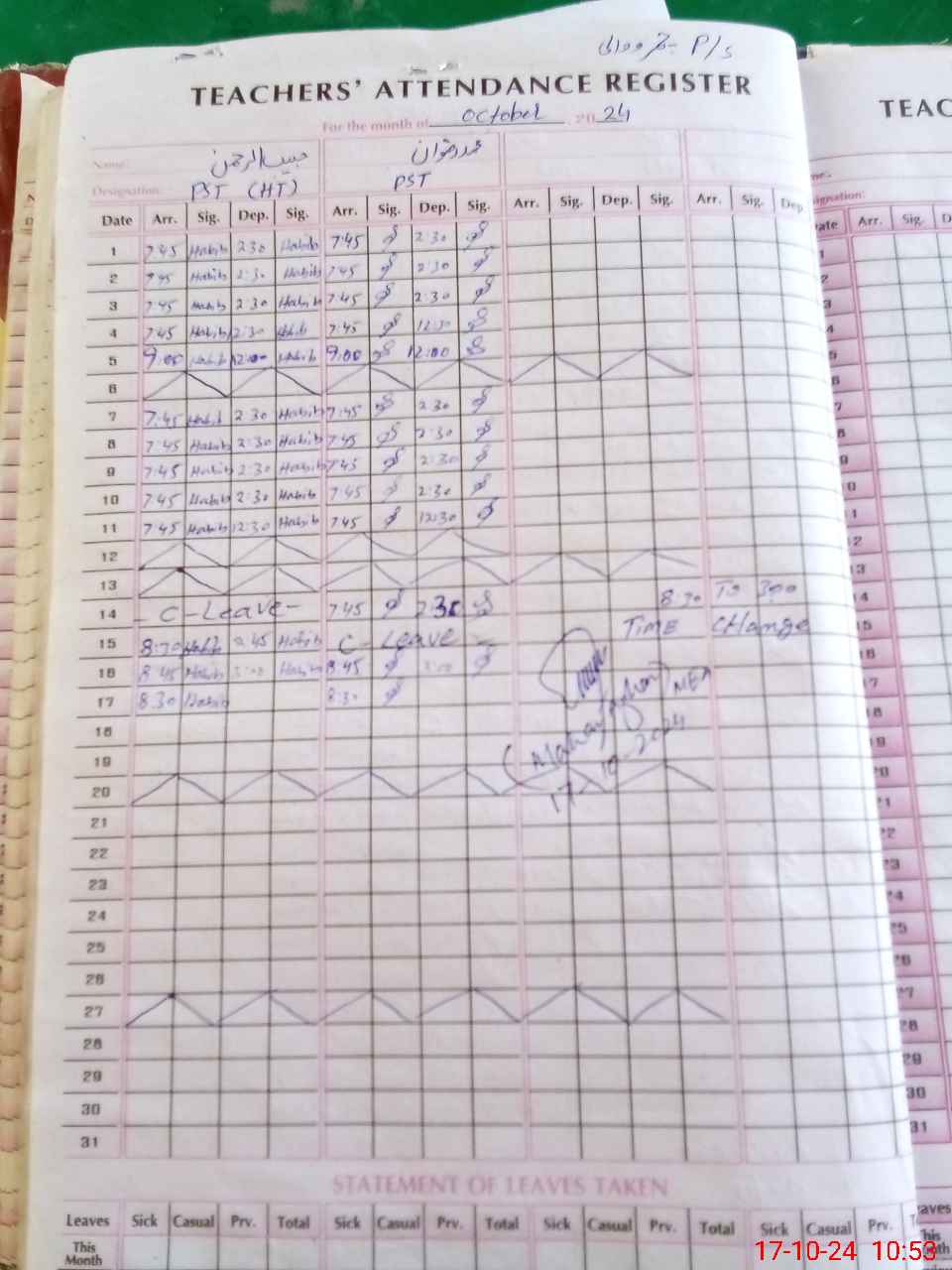 | Leave | Duty | Absent | Maternity | Medical | Ex- Pak |