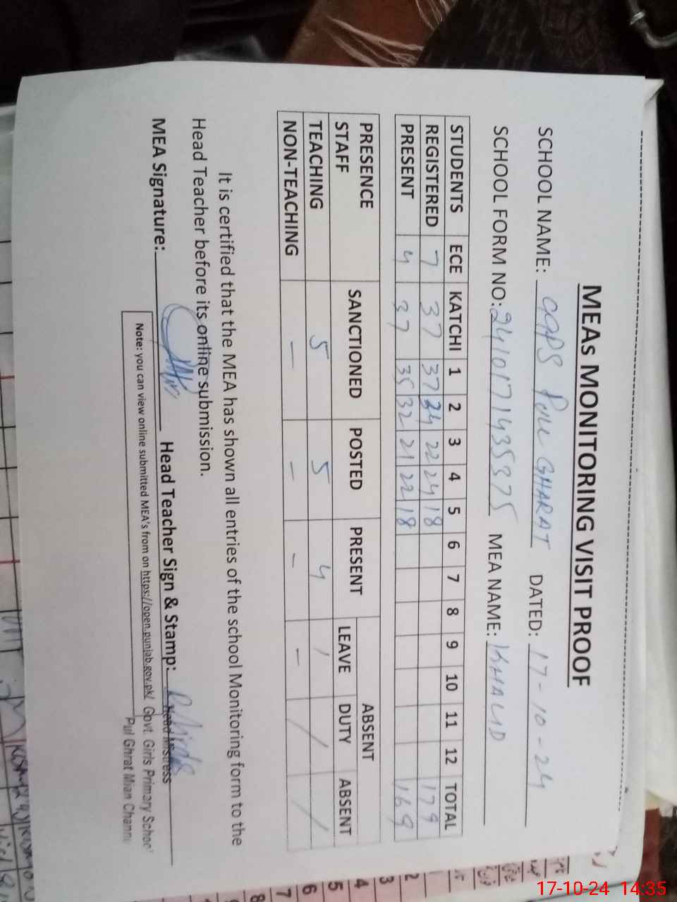 | EMIS Code: 36430381 | Name of School: GGPS PULL GHARAT, TULAMBA | |||