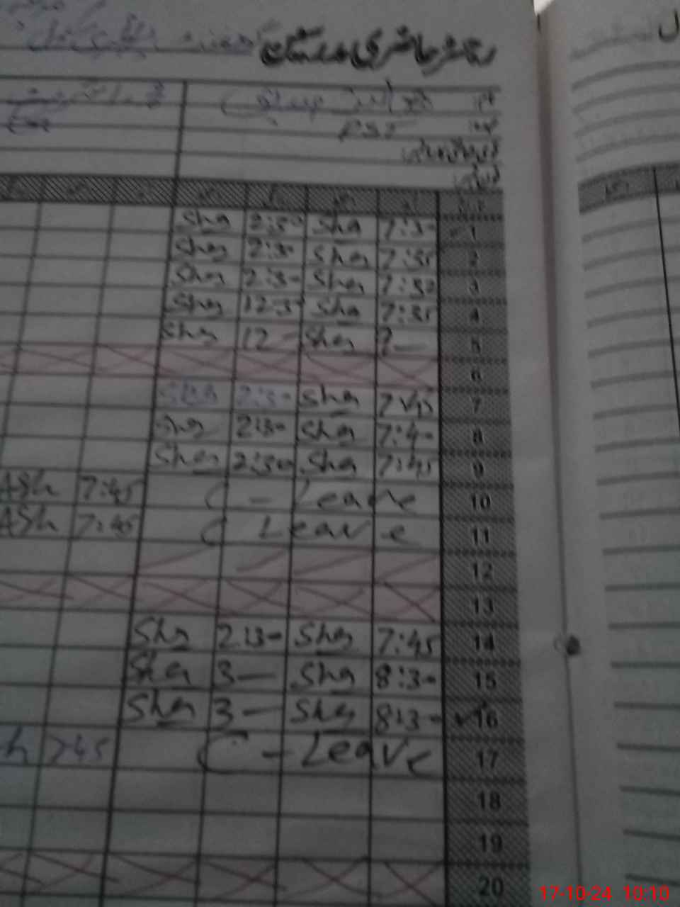 | 38**** | Sa**** Sh**** | PST | Temporary | 0 | 0 | 0 | 0 | 0 | 0 | 0 | 0 | 0 | Casual |