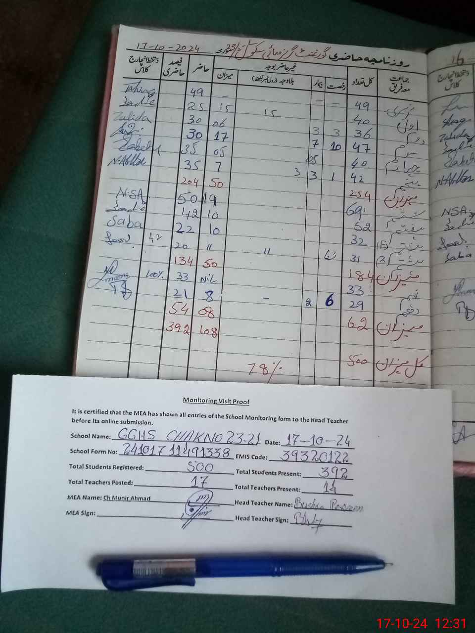 | EMIS Code: 39320122 | Name of School: GGHS CHAK NO.23/2-L | |||