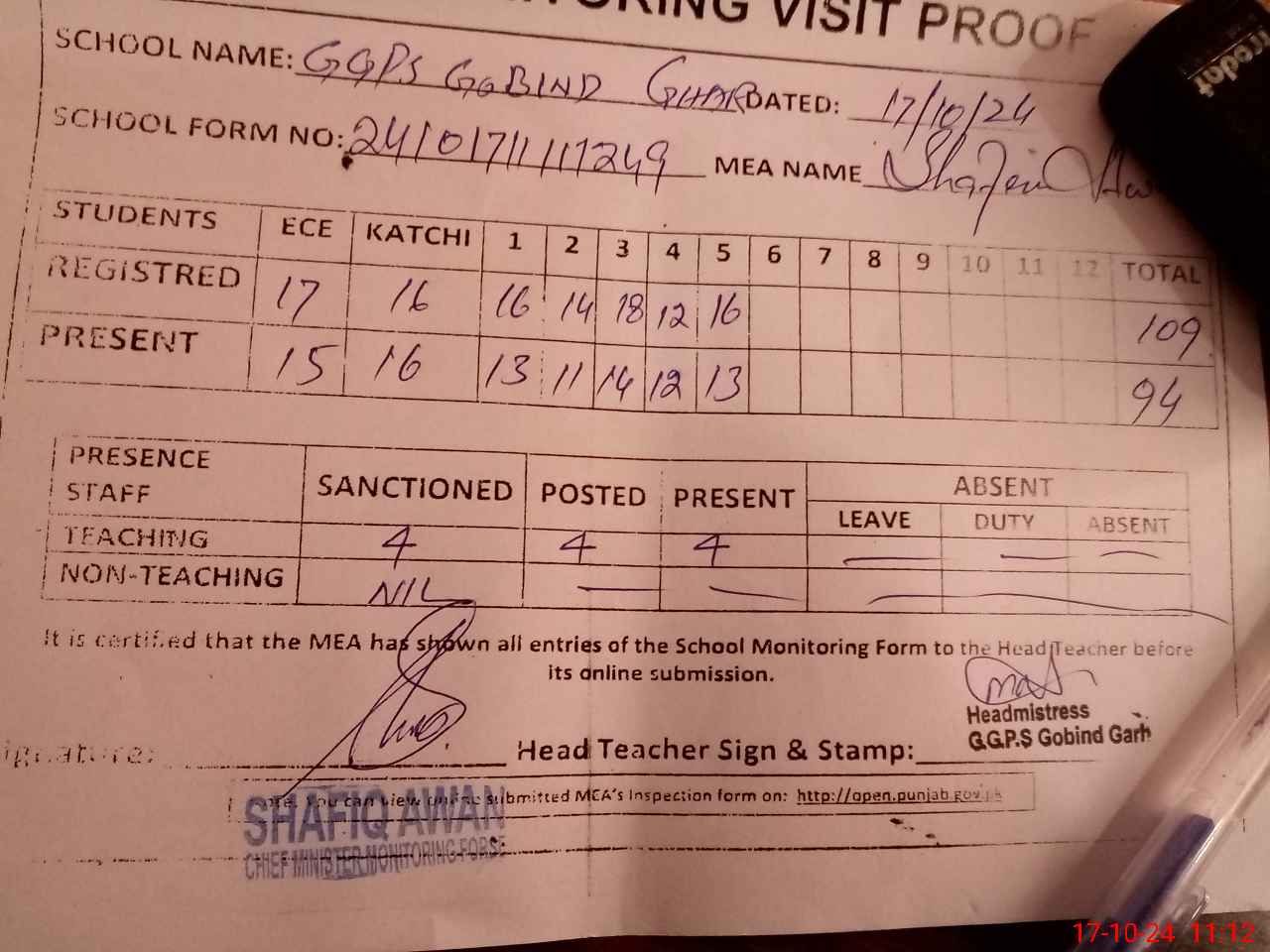 | EMIS Code: 36410446 | Name of School: GGPS GOBIND GARH, ABDUL HAKIM | |||