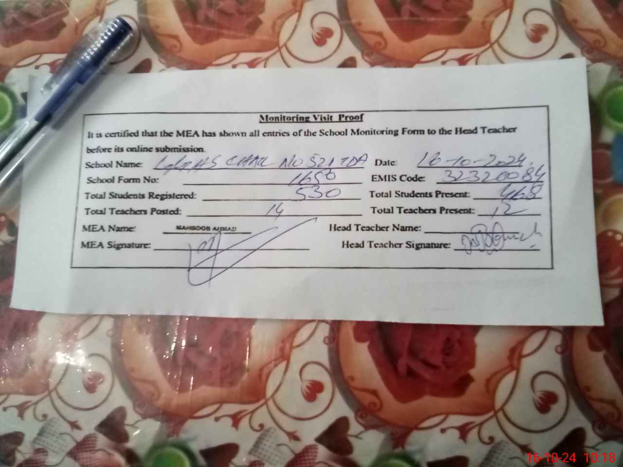 | EMIS Code: 32320084 | Name of School: GGHS CHAK NO. 521/TDA | |||