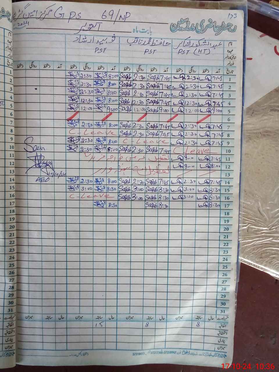 | Name: AB**** SH**** Designation: (School Headmaster's/Headmistress's) PST/PTC/JV Phone/Cell Number: 03**** |