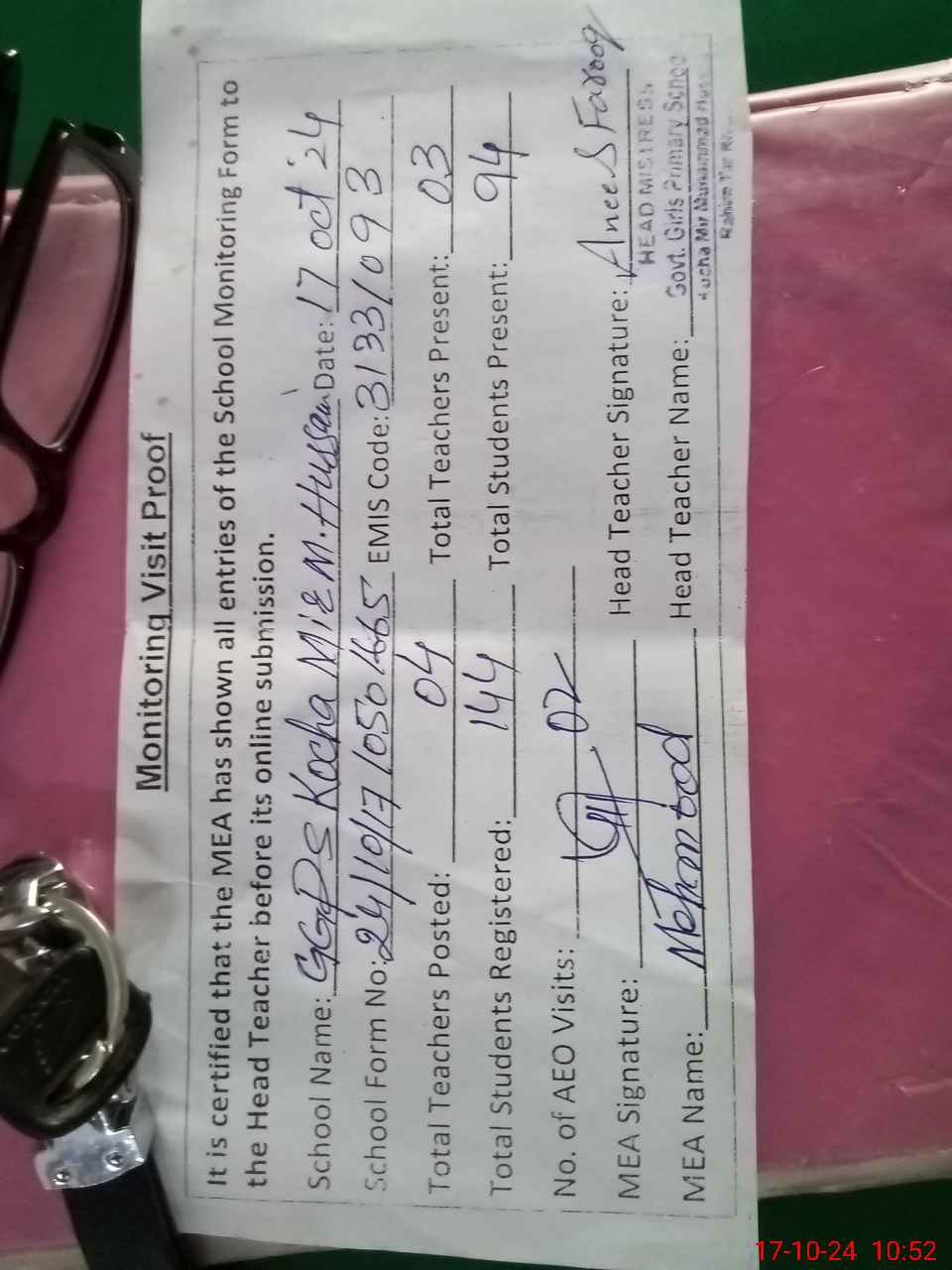 | EMIS Code: 31331093 | Name of School: GGPS MC KOCHA MIR MUHAMMAD HUSSAIN | |||